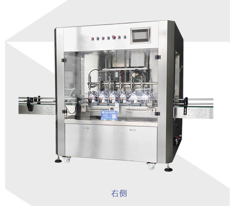 該六頭柱塞式全自動潤滑油灌裝機獨特的(de)灌裝頭設計及真空(kōng)回吸係統(tǒng),確保灌裝過程無殘油滴漏(lòu),快慢(màn)雙速灌裝,灌(guàn)裝速度可調,杜絕溢(yì)瓶現象。
