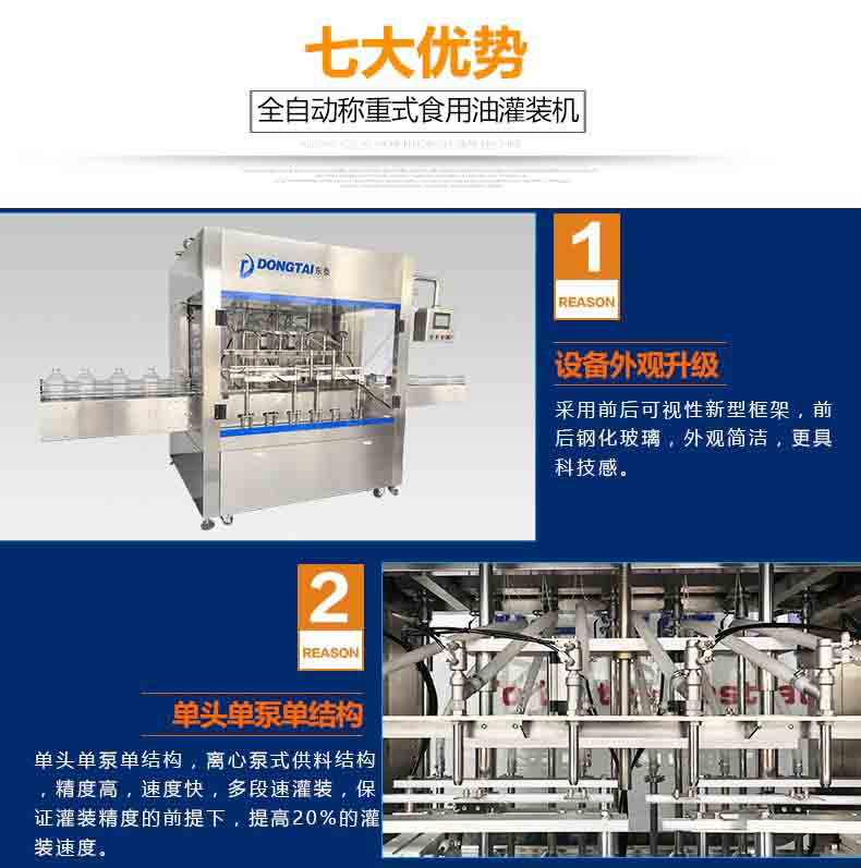 本機適用於對流體5kg-30kg的計重量灌裝。自動完成計(jì)數進瓶、計重(chóng)量灌裝、輸送出瓶(píng)等一係列操作。 特別適用於水劑、食用油(yóu)