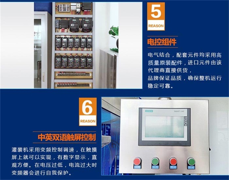 6.快慢雙速灌裝,剛開始灌裝時全速(sù)灌裝,在將要到達瓶口位置時通過(guò)改變電機轉速,實現快慢兩種速度的(de)交替,杜絕溢瓶現象有非常好的效果