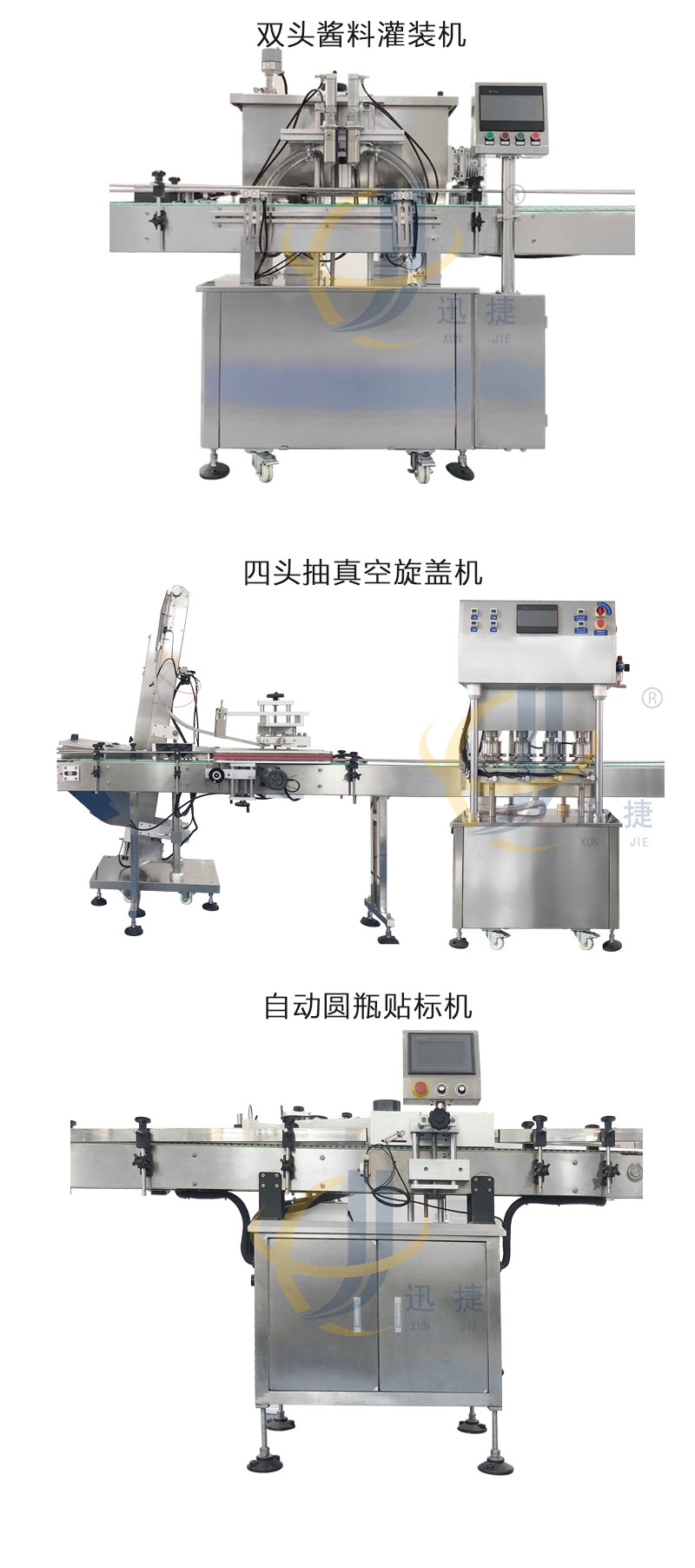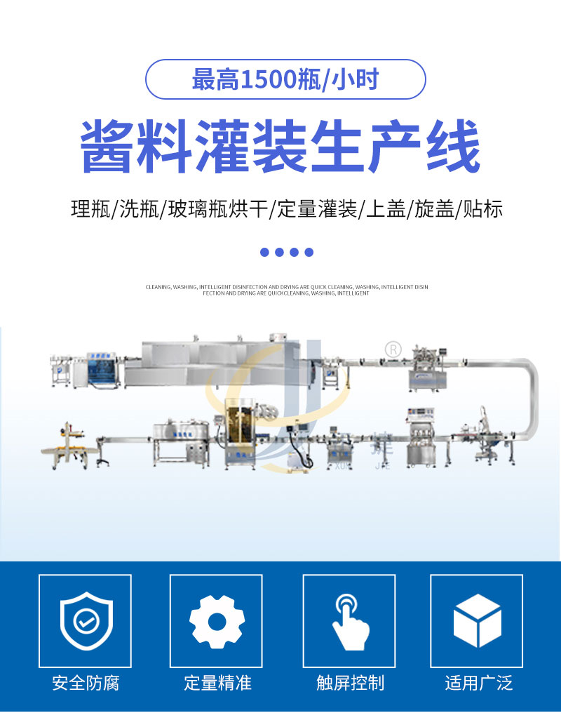 辣椒醬灌(guàn)裝生產線適合市麵上多種醬料(liào)包裝,如有油辣椒、海鮮醬、牛肉醬、香菇醬等的灌裝。適用於圓瓶或者六棱瓶。