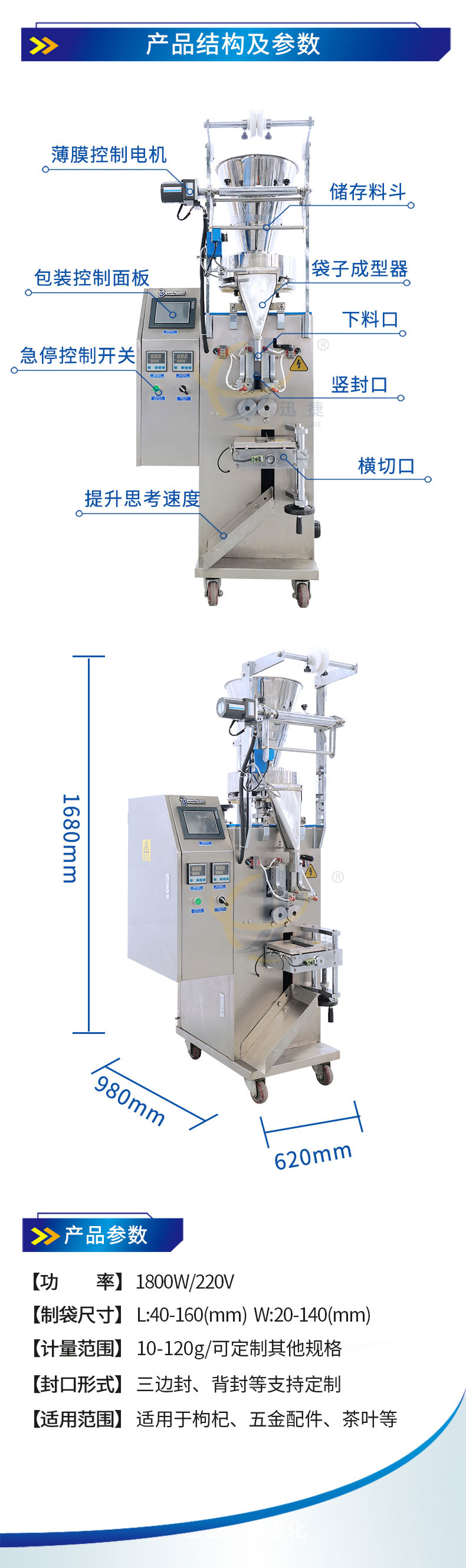全自動立式顆粒(lì)包裝機適用適合食品、化工產品中的圓狀和球(qiú)狀物(wù)料的自動包裝主。枸(gǒu)杞、五金配件、茶葉等包裝。