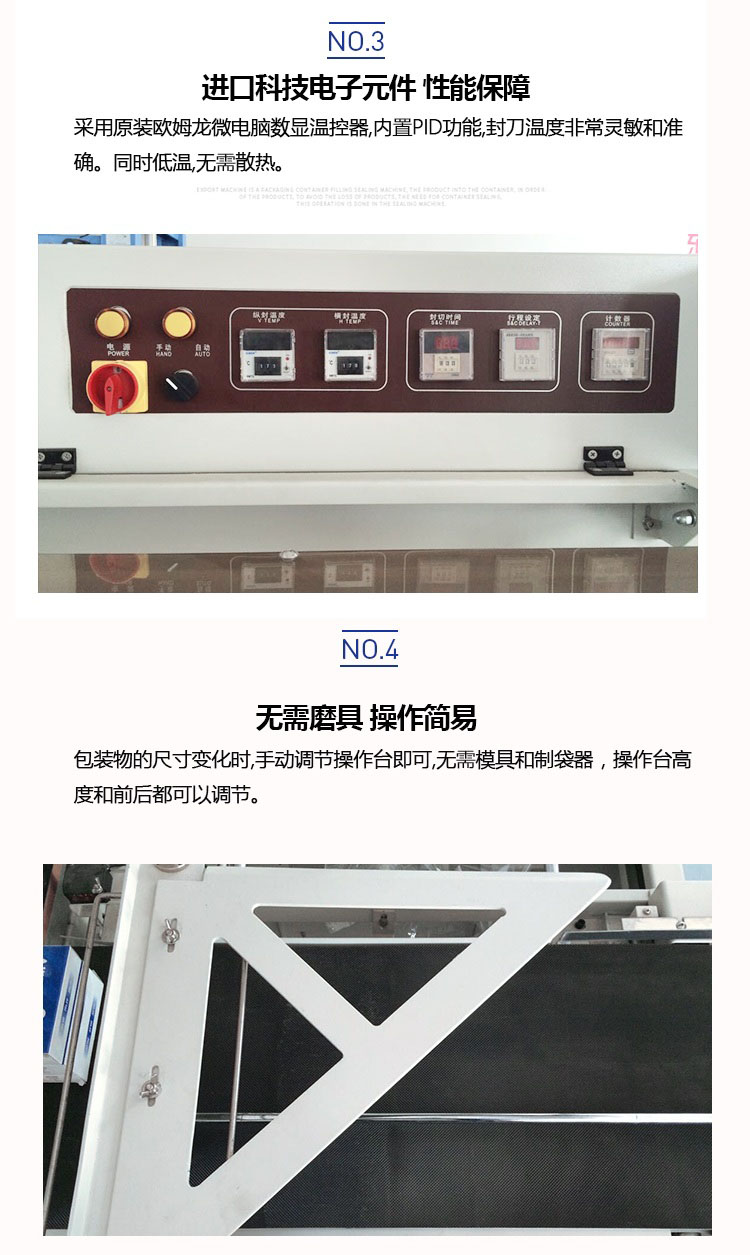 采用國際先進控製元件;封刀采用特殊設計,封口牢固、不開裂、不粘刀;