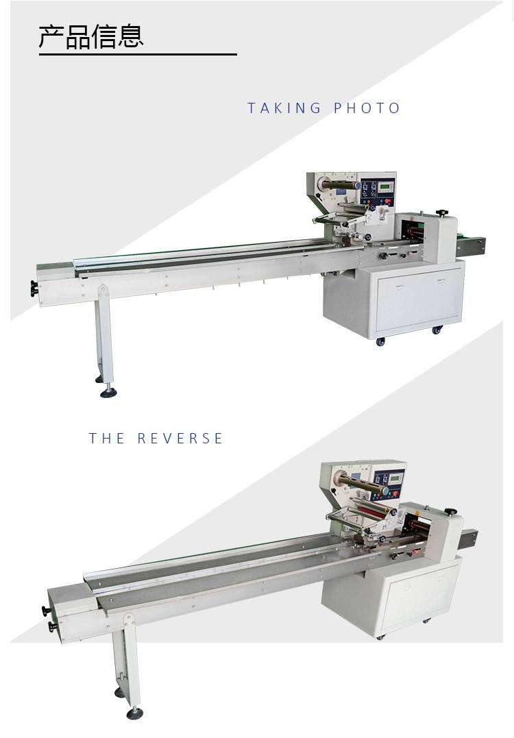 全(quán)自動包裝機為多動能枕式包裝(zhuāng)機,適用於各種固型產品的包裝,如食品類(方便麵、麵包、漢(hàn)堡、餅(bǐng)幹、雪(xuě)餅(bǐng)、冷凍食(shí)品)
