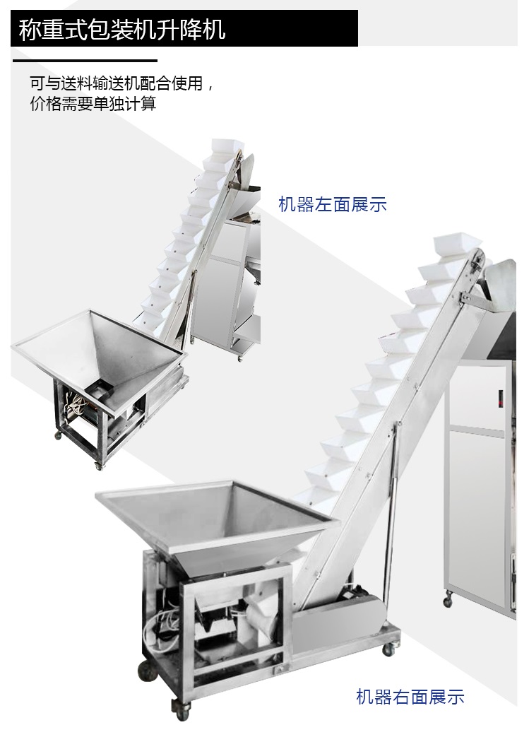 稱重包裝機針對包裝對象的(de)形態類別(bié)可分為顆粒稱重包裝機、粉(fěn)劑稱重(chóng)包裝機、全自動稱重包裝(zhuāng)機、食品稱重包(bāo)裝機等,稱重包裝機稱重(chóng)一字(zì)的意義是非常重大的, 包裝機帶有了稱(chēng)重的標誌表(biǎo)明包裝機的包裝計量更加的準確,相對一(yī)般包裝機的突出的特點是多添加了包裝(zhuāng)秤,保證被包裝對象在這裏得到很好的計量稱重,計量 的準確性,大大的保證了消費者(zhě)的利益,同時本款稱重包裝(zhuāng)機采用不鏽鋼的材質,清洗護理更加方便(biàn),同時本款稱重包裝機和其他(tā)的機械如封口機、噴碼機、貼標 機、打包機等可形成便捷的包裝機生產線。