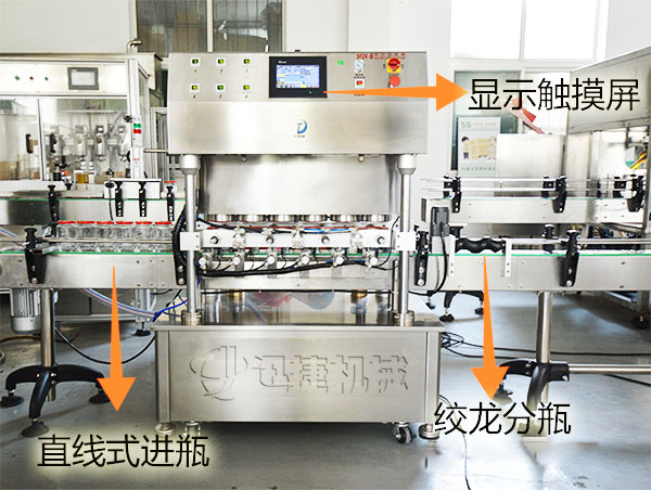 2、精確的絞龍分瓶機構和(hé)擋瓶係統,保證瓶子定位精(jīng)確無誤(wù),確保(bǎo)旋蓋效果。