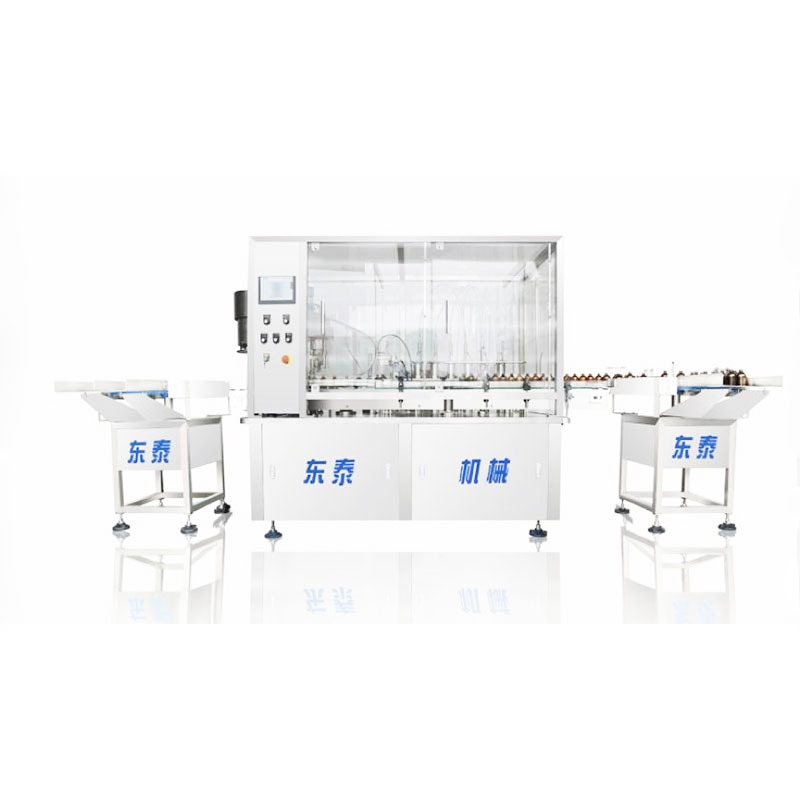 西林瓶(penicillin bottle),又稱:硼矽玻璃或鈉鈣玻璃管(guǎn)製(模製)注射劑瓶,是一種(zhǒng)膠塞封口的小瓶子。早期盤尼西林(lín)多用其盛裝,故名(míng)西(xī)林瓶。西林瓶(píng)灌裝的(de)多(duō)為(wéi)液體,藥(yào)品、營養(yǎng)液等,針對這種小瓶型液體灌(guàn)裝(zhuāng),機械廠家製造出小計量液體灌裝機來幫助液體灌裝的灌裝和生產,小計量液體灌裝機也叫(jiào)作西林瓶灌裝旋蓋一體機,小計量液體灌裝機(jī)屬於聯動機,其工作步驟包含(hán)了理瓶、灌裝、理蓋。掛蓋。壓蓋、旋蓋的步驟,滿足了液體包裝的大部分步驟,那麽液體灌裝機該如(rú)何選擇呢?