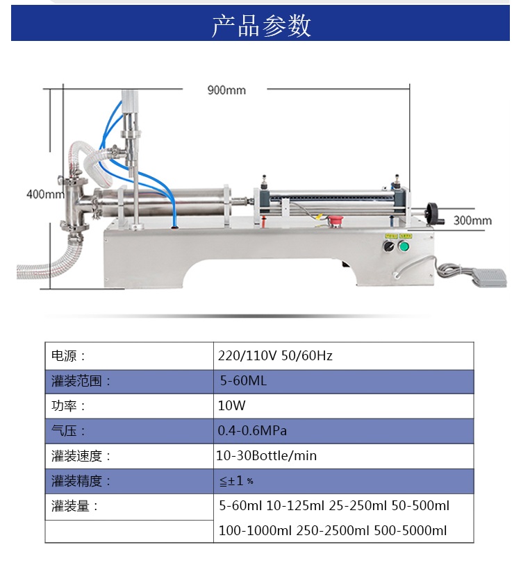 小型半自動單頭液體灌(guàn)裝機設備細節: